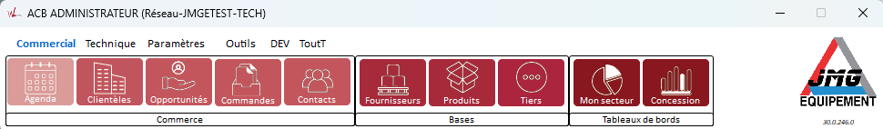 Lorsque l’utilisateur ouvre le logiciel, la bandeau Wincom s’affiche en premier. Il comprend :